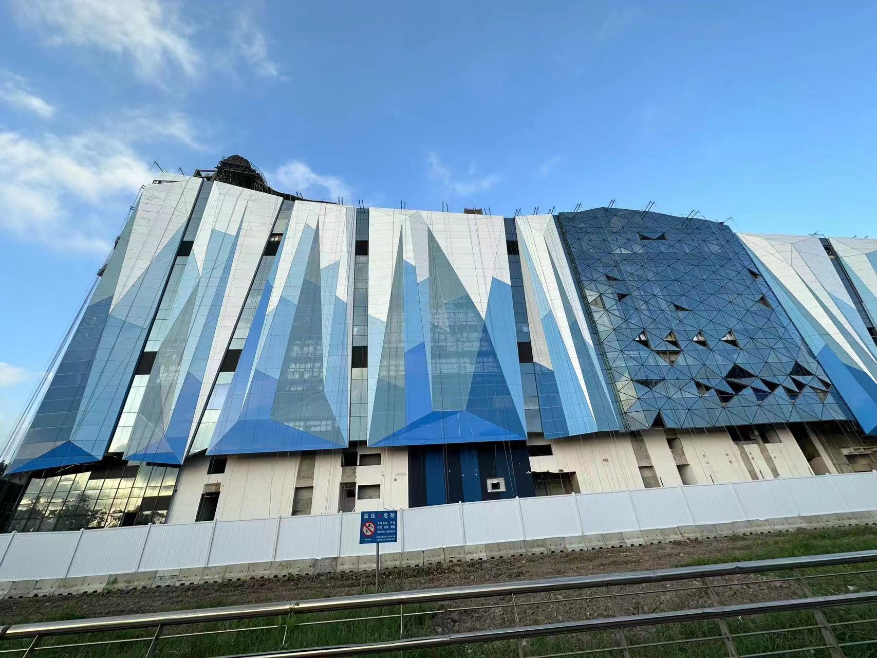 雅泰集團承建上海臨港冰雪北區(qū)幕墻整體制作及建設(shè),本項目為菠蘿面異形設(shè)計,充滿現(xiàn)代感的外立面,把冰雪世界的晶瑩閃耀充分展現(xiàn)。與之相匹配的鋁幕墻板的結(jié)構(gòu)復雜,加工難度較大,全異型、超大、超寬、超長鋁板,多數(shù)板長6-7米,且角度尖銳精度要求非常嚴格。面對高難度重點工程,雅泰集團快速成立項目攻艱突擊隊,選調(diào)管理、設(shè)計、加工精英,結(jié)合理解冰雪項目設(shè)計特點,最大程度達成設(shè)計師初衷。加工團隊對異型板件進行優(yōu)化拆解,分件加工,再進行一體化工廠組裝集成。同時集團擁有行業(yè)內(nèi)體量、規(guī)模均在前列,全長700米的進口先進噴涂設(shè)備,充分滿足超大、超長、超寬鋁板的氟碳漆面噴涂完成。