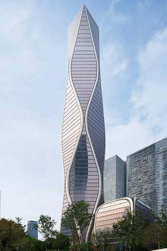 項目施工現(xiàn)場安裝高度超過200米,誤差精度不超過3mm,工匠們夜以繼日、精益求精的雕琢,打造出這座 54層高的水波紋型建筑。整棟塔樓外觀連綿起伏,仿佛在不斷地流動之中。