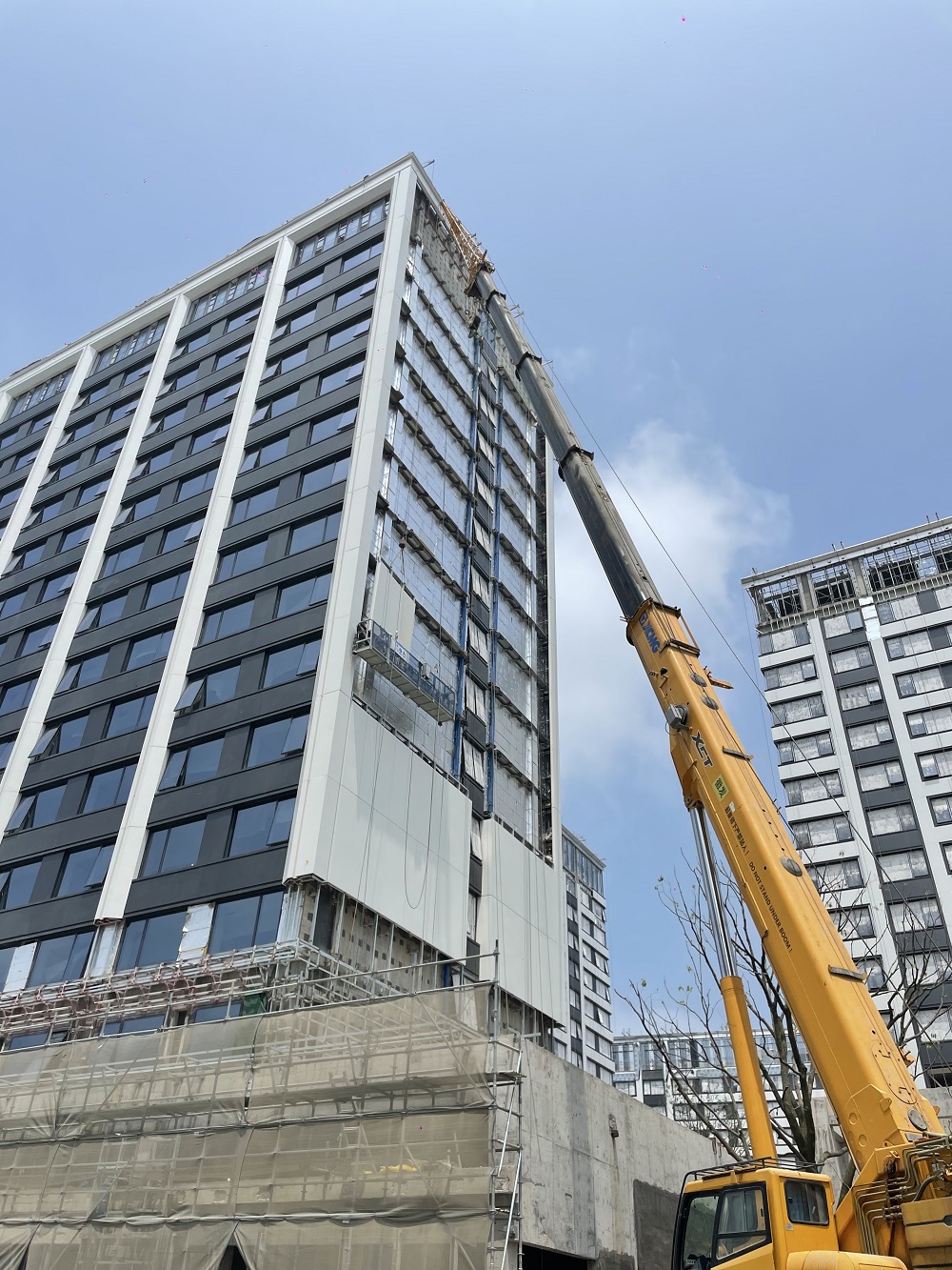為保障幾萬名研發(fā)人員的生活配套,緊鄰華為研發(fā)中心的上海西岑單身公寓項(xiàng)目目前也基本完成。項(xiàng)目包含35棟單體建筑和1棟短租式公寓,公寓進(jìn)度非常迅速,外墻采用了高效集成的裝配式單元金屬幕墻系統(tǒng)。裝配式幕墻污染少、節(jié)能環(huán)保,可減少90%以上的建筑垃圾 。同時(shí)由于裝配式幕墻二次結(jié)構(gòu)已施工前置,所以相對傳統(tǒng)結(jié)構(gòu)安裝,工期會提前10%-15%。