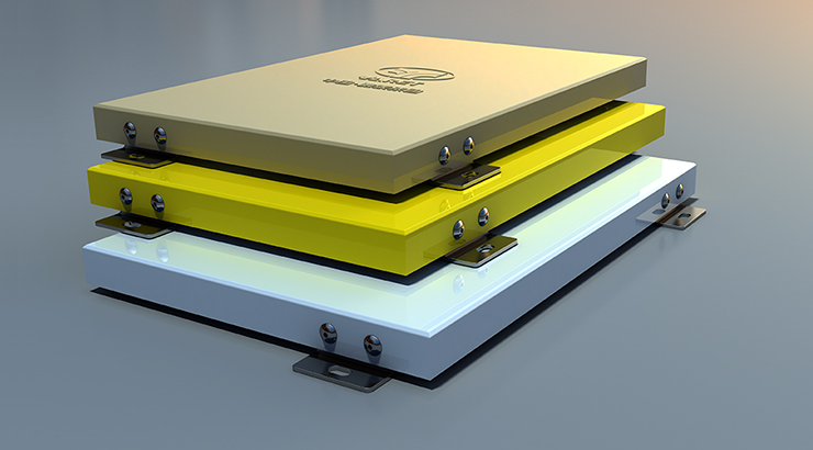 烤瓷鋁單板采用鋁合金板為基材,表面涂裝水性陶瓷涂料,通過加熱固化方式,形成性能與陶瓷相似的涂層,具有耐高溫、不燃性、超強(qiáng)耐候、易清潔、高硬度、抗劃傷、抗菌等優(yōu)勢,且不含傳統(tǒng)有機(jī)溶劑,屬于綠色環(huán)保材料。